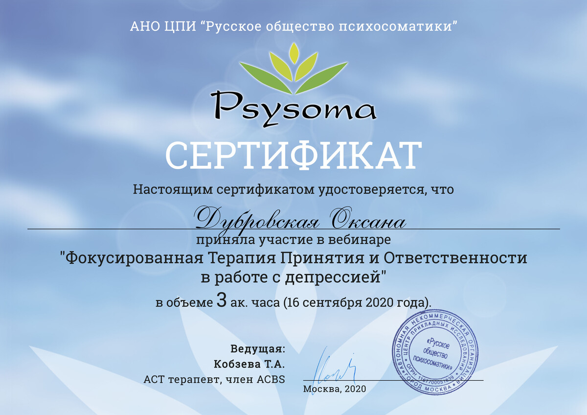 Я работаю в тандеме с врачом-психиатром и неврологом. Если я увижу необходимость, то порекомендую Вам обращение к одному из этих или других специалистов. Потому что помимо Вашего психологического состояния, я понимаю важность поддерживать Ваше физическое и ментальное благополучие на должном уровне.